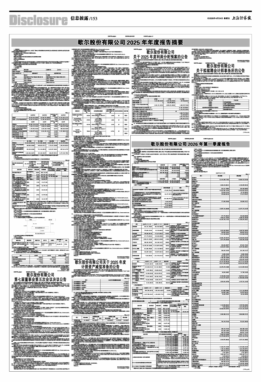 《歌尔股份有限公司2025年年度报告摘要》详见信息披露媒体巨潮资讯网http://www.cninfo.com.cn、《证券时报》《中国证券报》《上海证券报》《证券日报》。