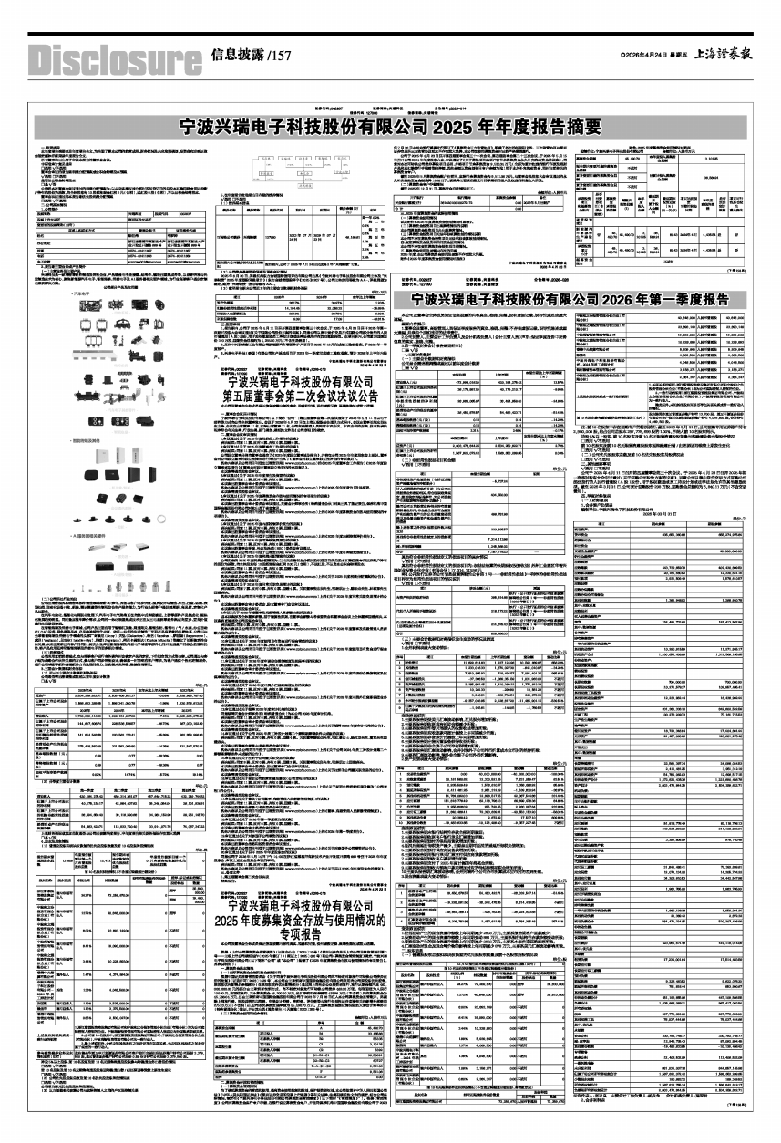 根据《上市公司募集资金监管规则》(证监会公告〔2025〕10号)《深圳证券交易所上市公司自律监管指引第1号一一主板上市公司规范运作(2025年修订)》(深证上〔2025〕480号)和公司《募集资金管理制度》规定,宁波兴瑞电子科技股份有限公司(以下简称“公司”或“本公司”)编制了《2025年度募集资金存放与使用情况的专项报告》,具体说明如下: