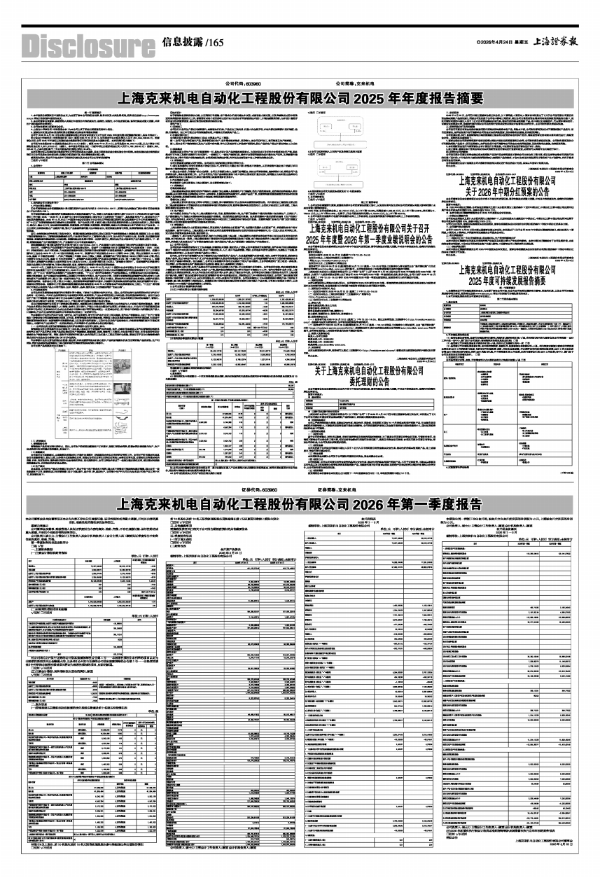 上海克来机电自动化工程股份有限公司2025年年度报告摘要