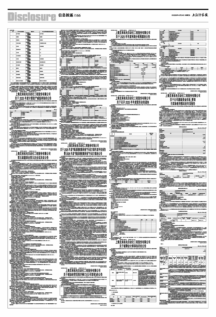 上海克来机电自动化工程股份有限公司(以下简称“公司”)于2026年4月13日以电邮送达方式,向全体董事和高级管理人员发出“公司关于召开第五届董事会第四次会议的通知”,并将有关会议材料通过电邮的方式送达所有董事和高级管理人员,由于2026年4月20日召开临时董事会会议,公司于当日通过电邮送达方式告知本次会议届次顺延为“第五届董事会第五次会议”,会议内容未变更。公司第五届董事会第五次会议于2026年4月23日以现场和通讯相结合的方式召开。会议应到董事7人,实到董事7人(其中,以通讯表决方式出席会议的董事4人),公司高级管理人员列席了会议。本次出席会议人数超过董事总数的二分之一,表决有效。会议由董事长谈士力先生主持,本次董事会会议的召开符合《中华人民共和国公司法》和《公司章程》的有关规定。