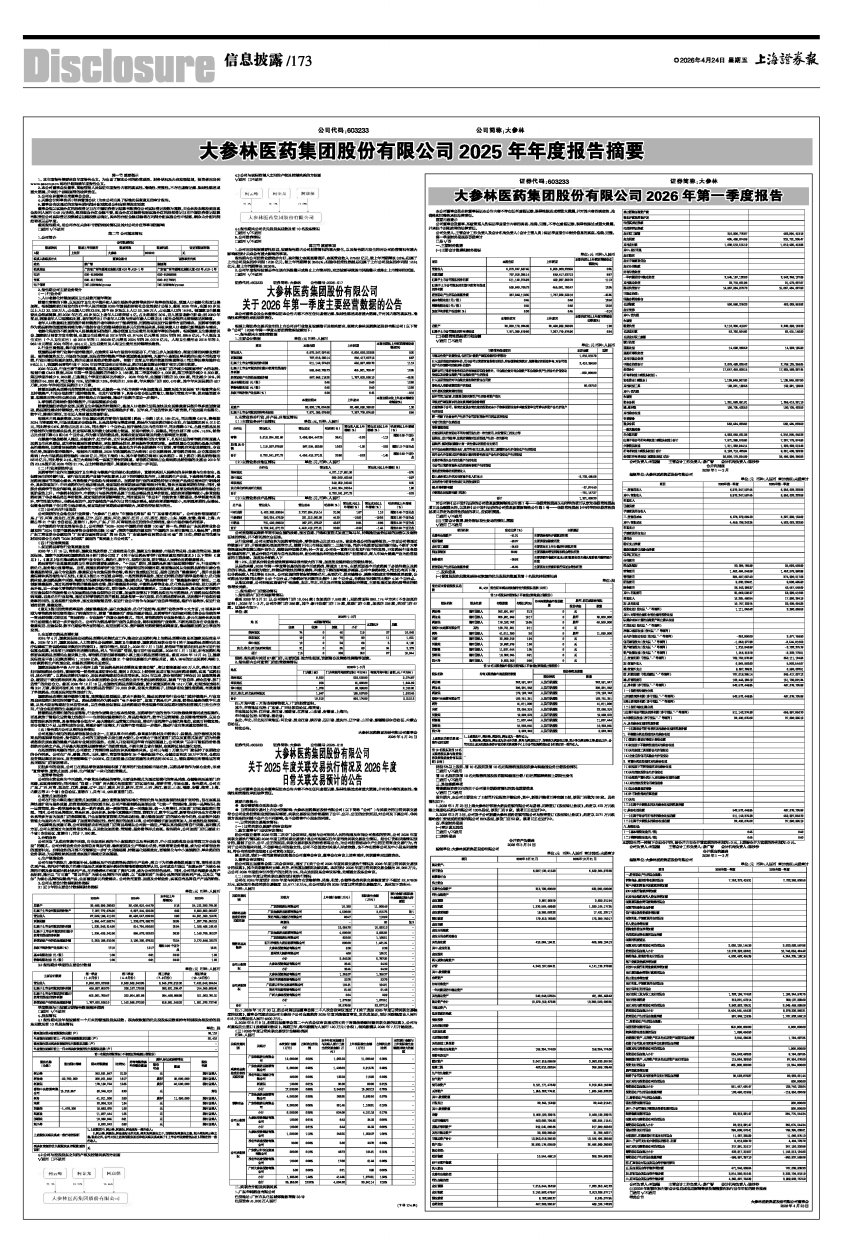 根据上海证券交易所发布的上市公司分行业信息披露指引及相关要求,现将大参林医药集团股份有限公司(以下简称“公司”)2026年第一季度主要经营数据披露如下: