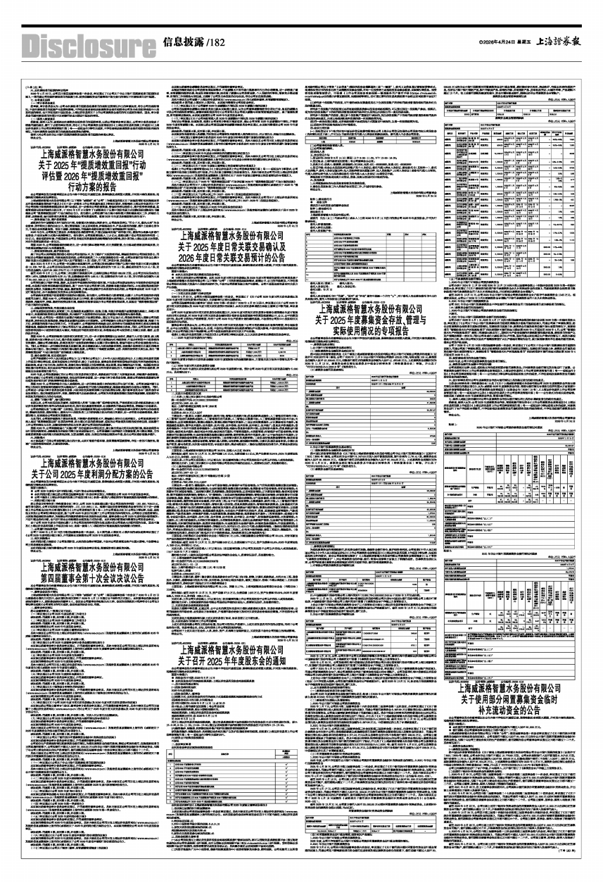 具体内容详见公司同日在上海证券交易所网站(www.sse.com.cn)及指定信息披露媒体上发布的《威派格2025年年度报告》和《威派格2025年年度报告摘要》。