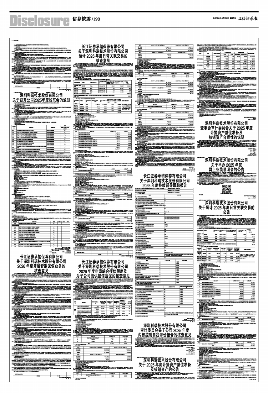 深圳科瑞技术股份有限公司(以下简称“公司”)已于2026年4月24日披露《深圳科瑞技术股份有限公司2025年年度报告》全文及其摘要,具体内容详见公司刊登于巨潮资讯网(www.cninfo.com.cn)和指定信息披露媒体的相关内容。