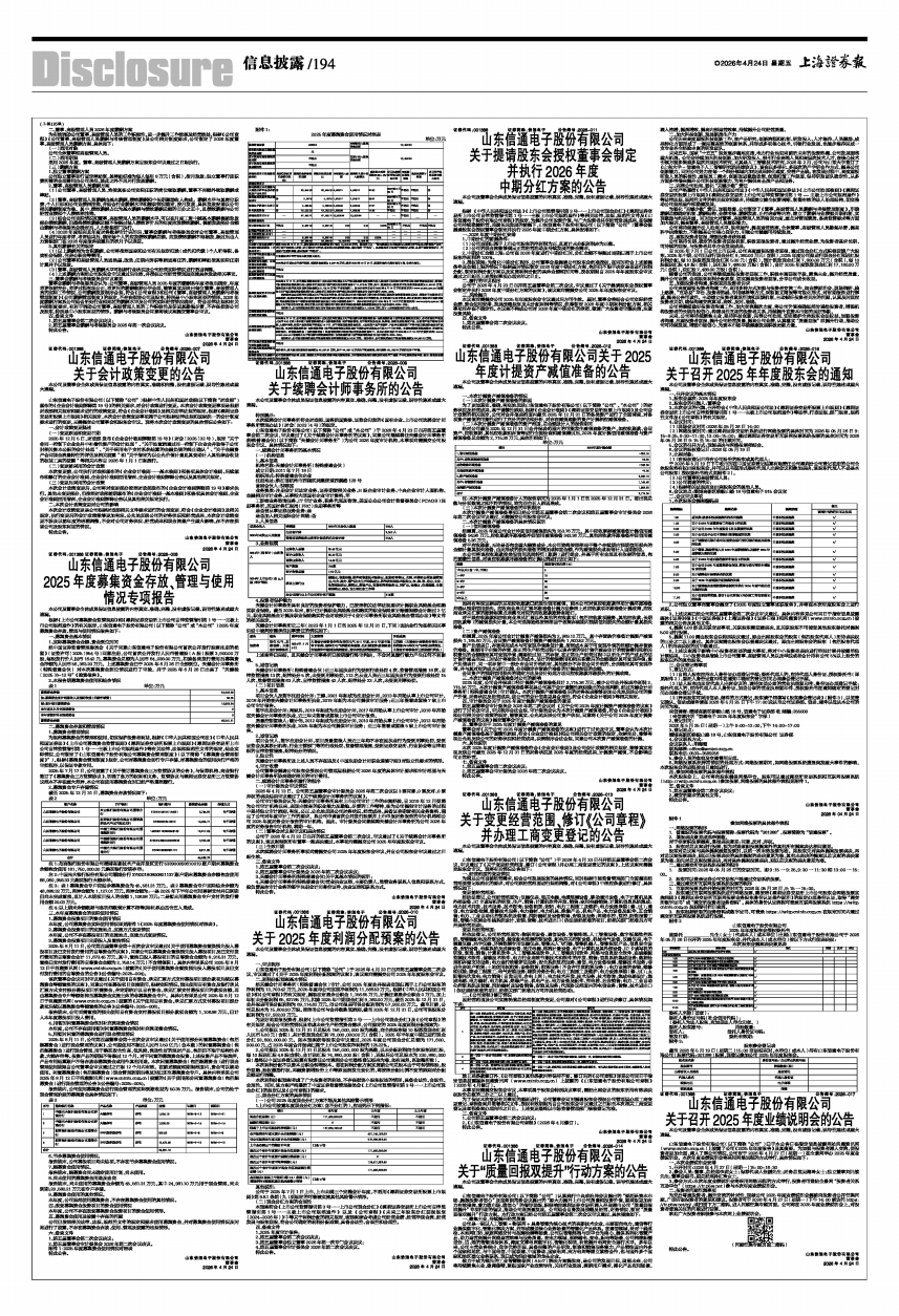 山东信通电子股份有限公司(以下简称“公司”)已于本公告日在指定信息披露网站巨潮资讯网(www.cninfo.com.cn)上披露了公司《2025年年度报告》及其摘要。为加强与投资者深入交流,使投资者更加全面、深入了解公司情况,公司定于2026年4月27日(星期一)在全景网举办2025年度业绩说明会。本次年度业绩说明会将采用网络远程的方式举行,具体情况如下: