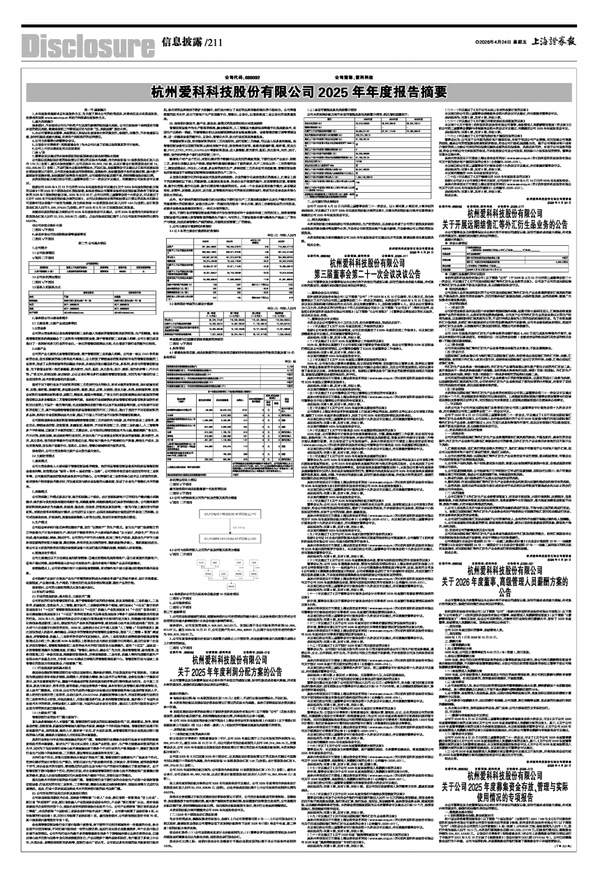 杭州爱科科技股份有限公司2025年年度报告摘要