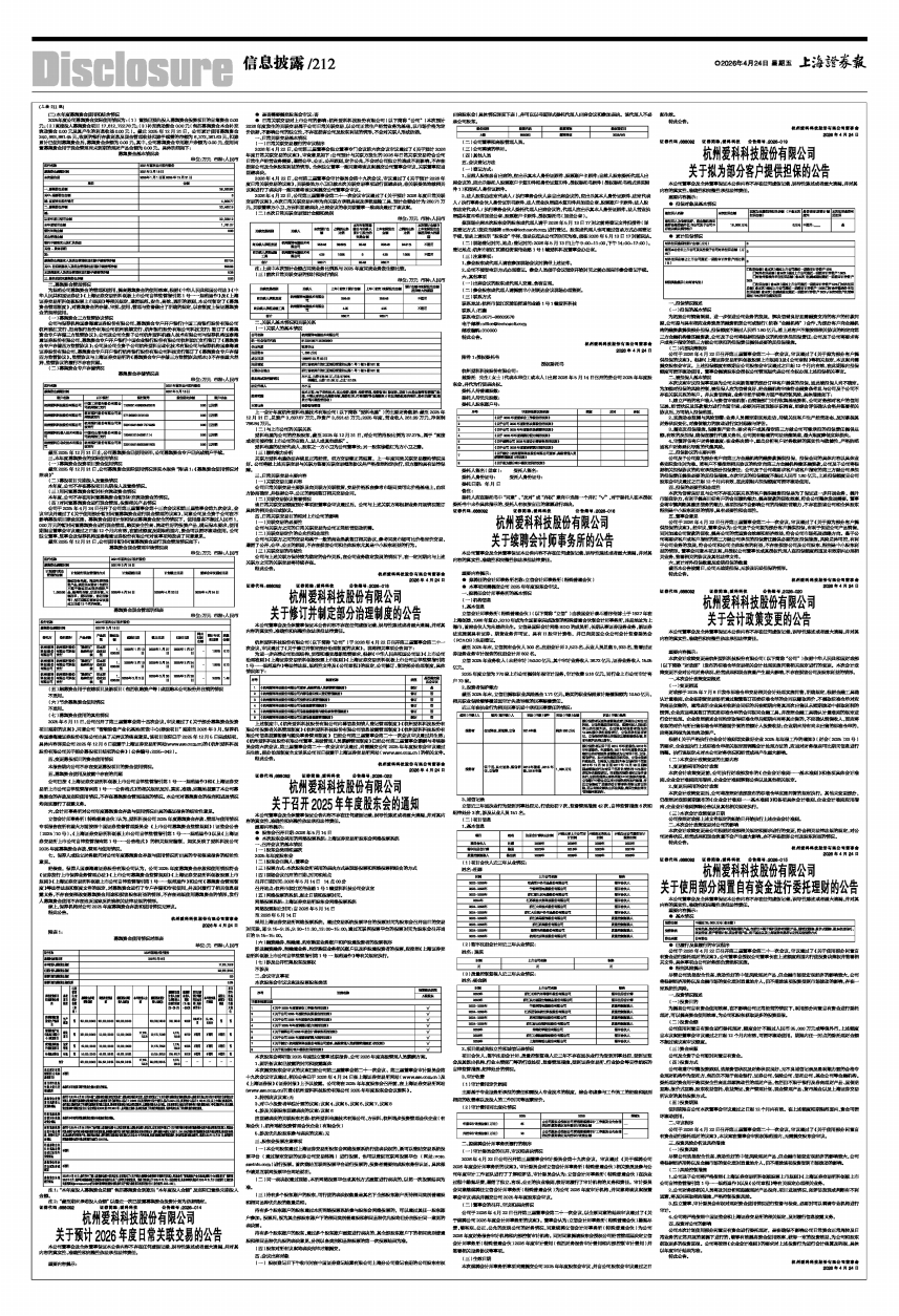 上述制度中,《杭州爱科科技股份有限公司内幕信息知情人登记管理制度》《杭州爱科科技股份有限公司投资者关系管理制度》《杭州爱科科技股份有限公司信息披露管理制度》《杭州爱科科技股份有限公司信息披露暂缓与豁免事务管理制度》已经公司第三届董事会第二十一次会议审议通过并生效;《杭州爱科科技股份有限公司董事、高级管理人员薪酬管理制度》已经公司第三届董事会薪酬与考核委员会第六次会议、第三届董事会第二十一次会议审议通过,尚需提交公司2025年年度股东会审议通过后生效。部分治理制度全文详见公司同日披露于上海证券交易所网站(www.sse.com.cn)的相关文件。