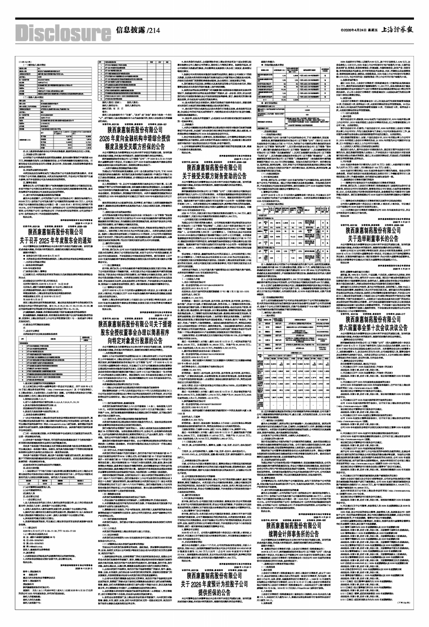 陕西康惠制药股份有限公司(以下简称“公司”)第六届董事会第十次会议通知于2026年4月11日以电子邮件和专人送出方式送达全体董事,2026年4月22日在公司会议室以现场结合通讯方式召开。本次董事会会议应出席董事9人,实际参加董事9人,会议由李红明先生主持,公司高级管理人员、董事会秘书及证券事务代表列席了会议。本次会议符合《公司法》、《公司章程》和《董事会议事规则》的有关规定,会议的召集、召开合法有效。