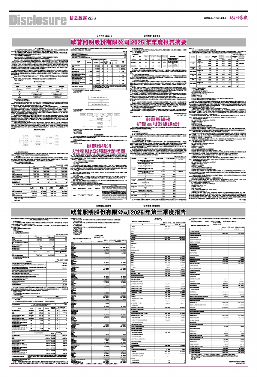 证券代码:603515 证券简称:欧普照明 公告编号:2026-012