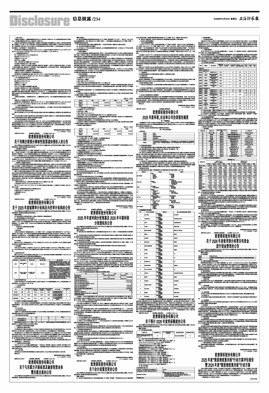 为深入贯彻中央经济工作会议、中央金融工作会议精神,认真落实国务院《关于进一步提高上市公司质量的意见》要求,积极响应上海证券交易所《关于开展沪市公司“提质增效重回报”专项行动的倡议》,欧普照明股份有限公司(以下简称“欧普照明”或“公司”)于2025年4月制定并发布了2025年度“提质增效重回报”行动方案。2025年,公司切实履行并持续评估“提质增效重回报”行动方案的具体举措,现将行动方案实施效果的评估情况暨2026年度“提质增效重回报”行动方案报告如下: