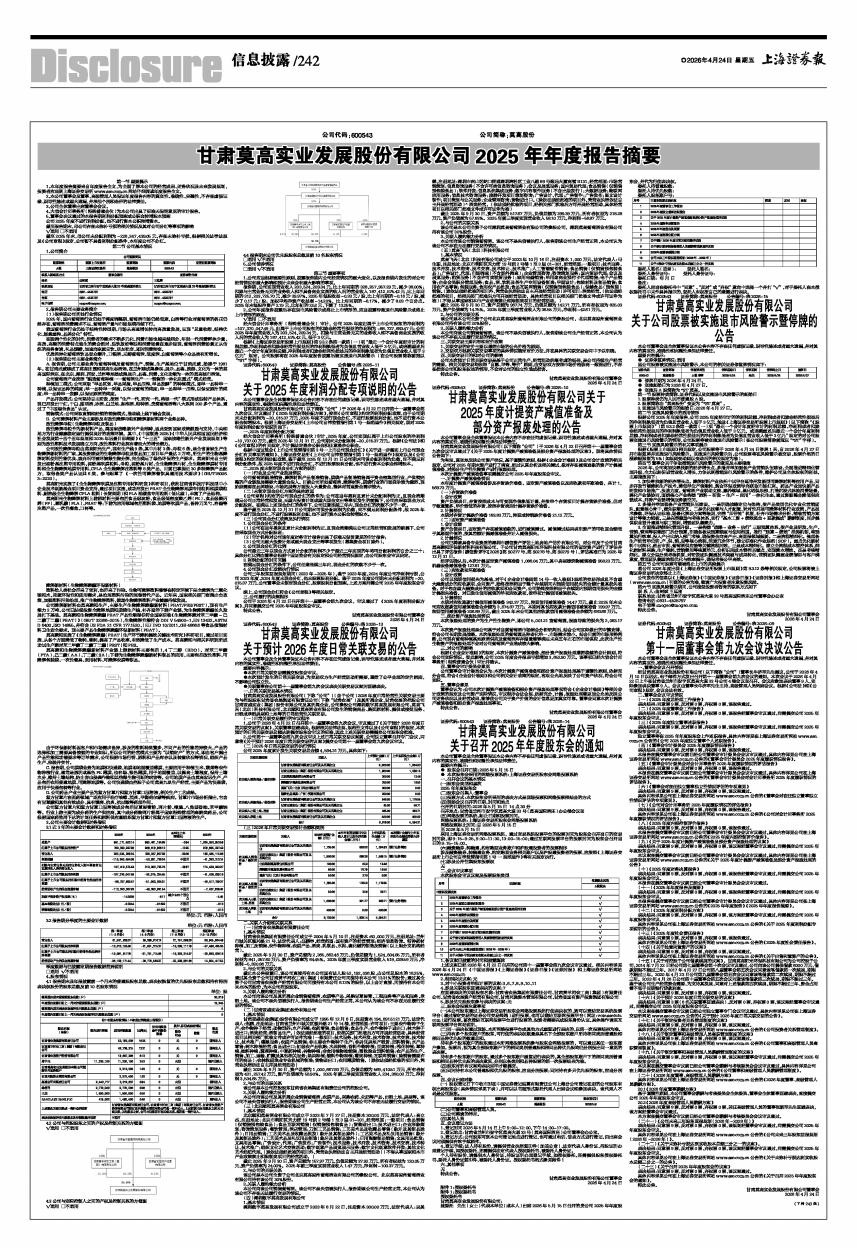 甘肃莫高实业发展股份有限公司2025年年度报告摘要