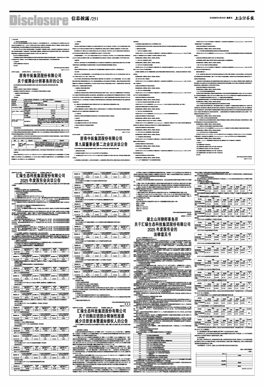 2、湖北山河律师事务所出具的《关于汇绿生态科技集团股份有限公司2025年度股东会的法律意见书》;