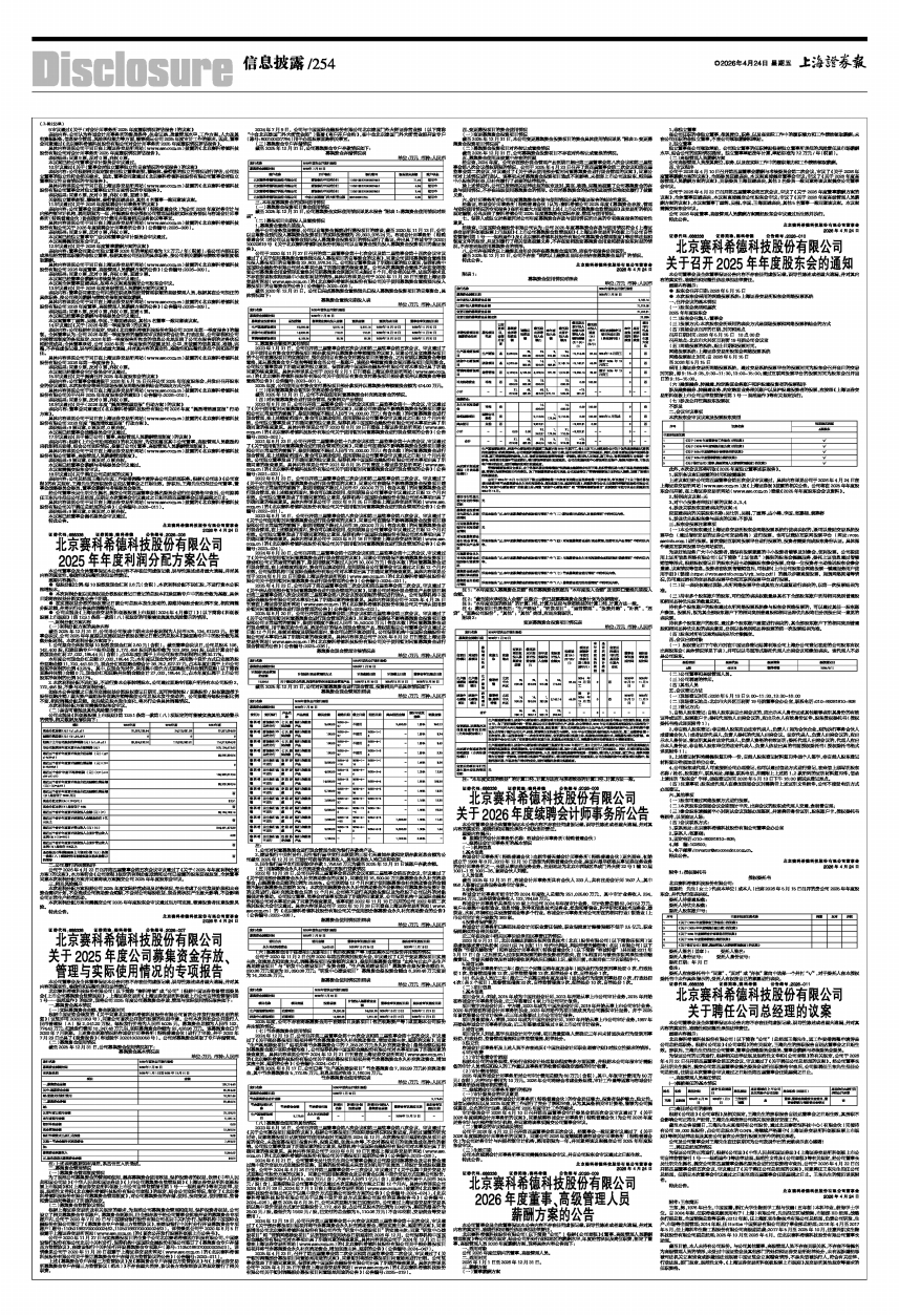 具体内容详见公司于同日在上海证券交易所网站(www.sse.com.cn)披露的《北京赛科希德科技股份有限公司关于召开2025年年度股东会的通知》(公告编号:2026-010)。