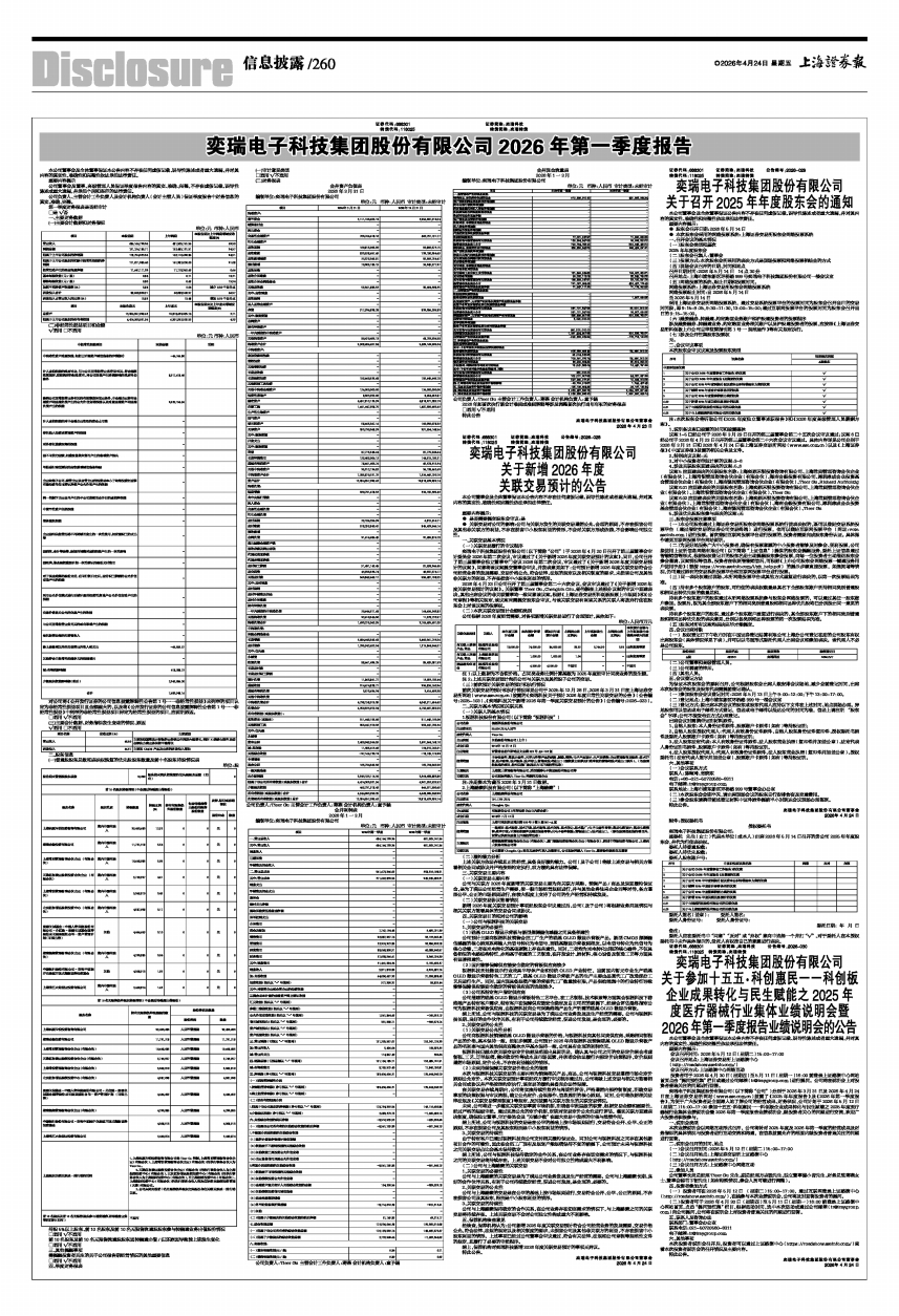 奕瑞电子科技集团股份有限公司(以下简称“公司”)分别于2026年3月31日及2026年4月24日在上海证券交易所网站(www.sse.com.cn)披露了《2025年年度报告》及《2026年第一季度报告》,为便于广大投资者更全面深入地了解公司的经营成果、财务状况,公司计划于2026年5月12日(星期二)15:00-17:00参加十五五·科创惠民一一科创板企业成果转化与民生赋能之2025年度医疗器械行业集体业绩说明会暨2026年第一季度报告业绩说明会,就投资者关心的问题进行交流,欢迎广大投资者积极参与。