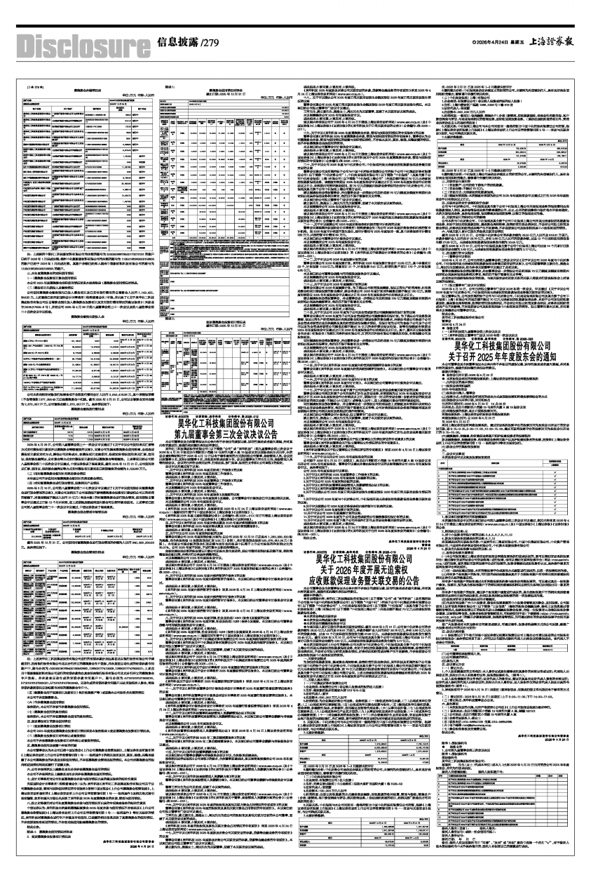 《昊华科技2025年年度报告》及摘要详见2026年4月24日上海证券交易所网站(www.sse.com.cn)(摘要同时刊登于《中国证券报》《上海证券报》《证券时报》)。