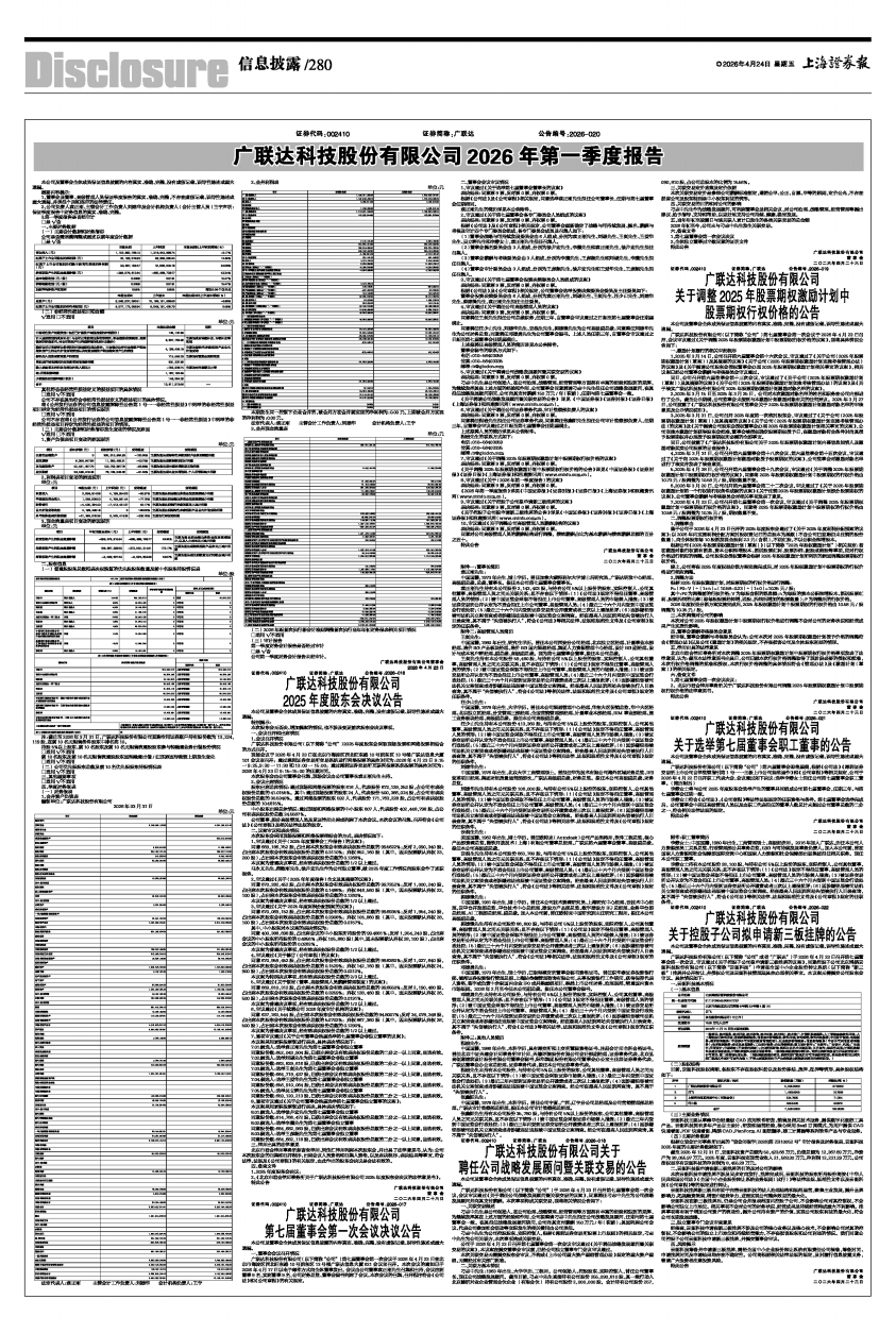 注:截止至2026年3月31日,广联达科技股份有限公司回购专用证券账户持有股份数为13,224,119股,在前10名无限售条件股东中排名第10。