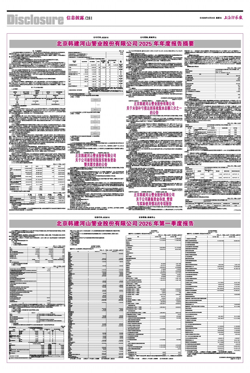 北京韩建河山管业股份有限公司2025年年度报告摘要