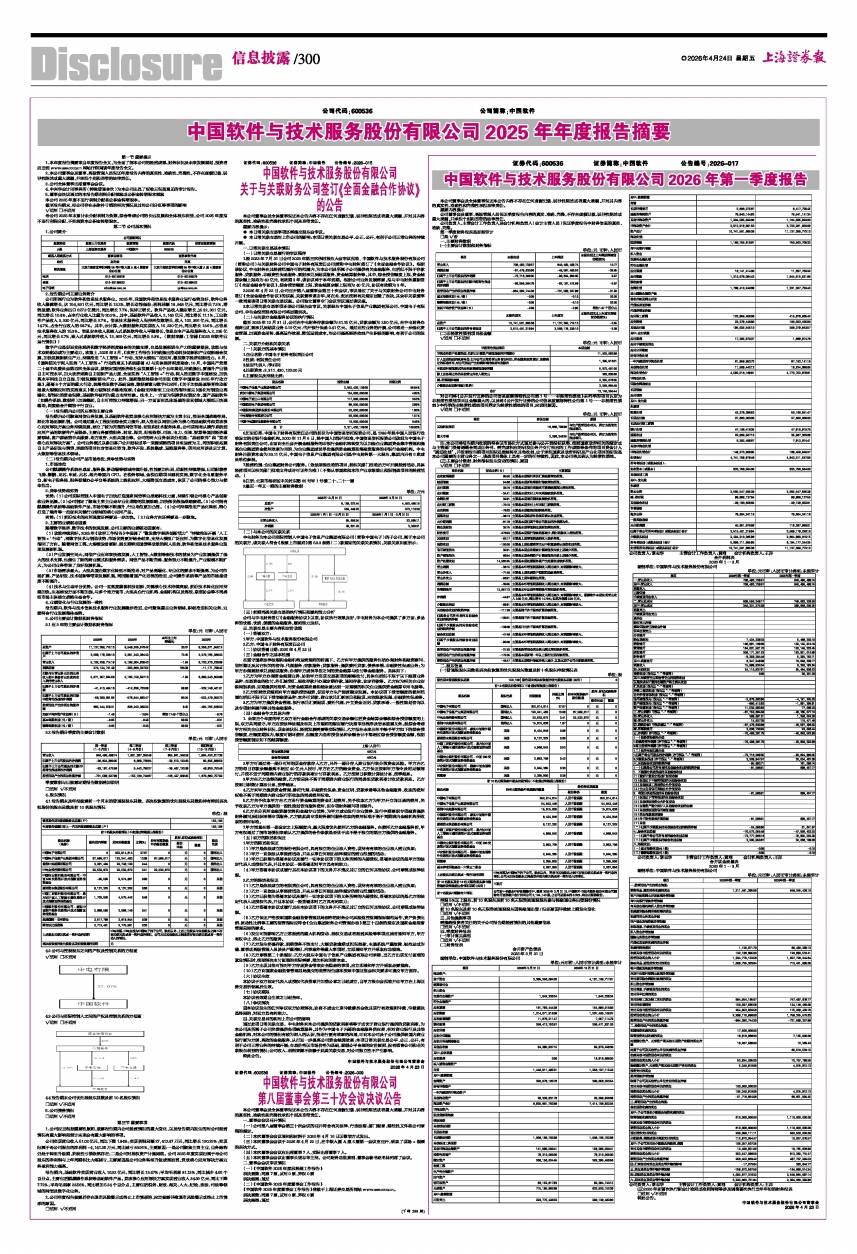 中国软件与技术服务股份有限公司2026年第一季度报告