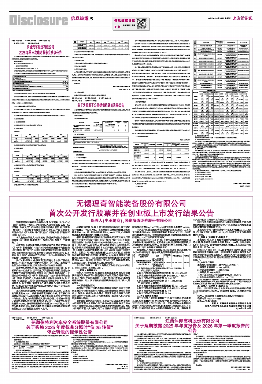 2026年4月24日(T+4日),国泰海通将包销资金、参与战略配售的投资者缴款与网上、网下投资者缴款认购的资金扣除保荐承销费后划转至发行人,由发行人向中国结算深圳分公司提交股份登记申请,将包销股份登记至国泰海通指定证券账户。