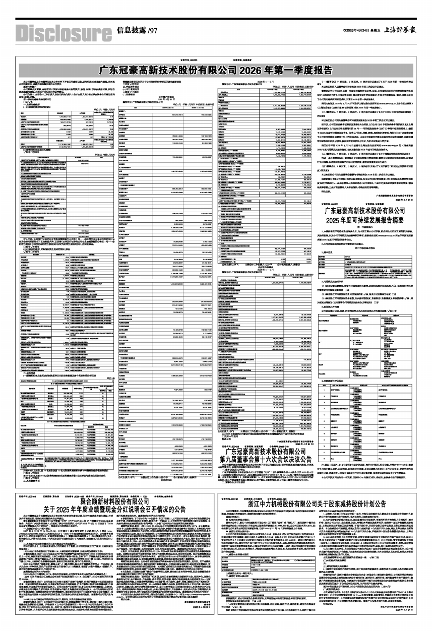 1、本摘要来自于可持续发展报告全文,为全面了解本公司环境、社会和公司治理议题的相关影响、风险和机遇,以及公司可持续发展战略等相关事项,投资者应当到www.sse.com.cn网站仔细阅读冠豪高新2025年度可持续发展报告全文。