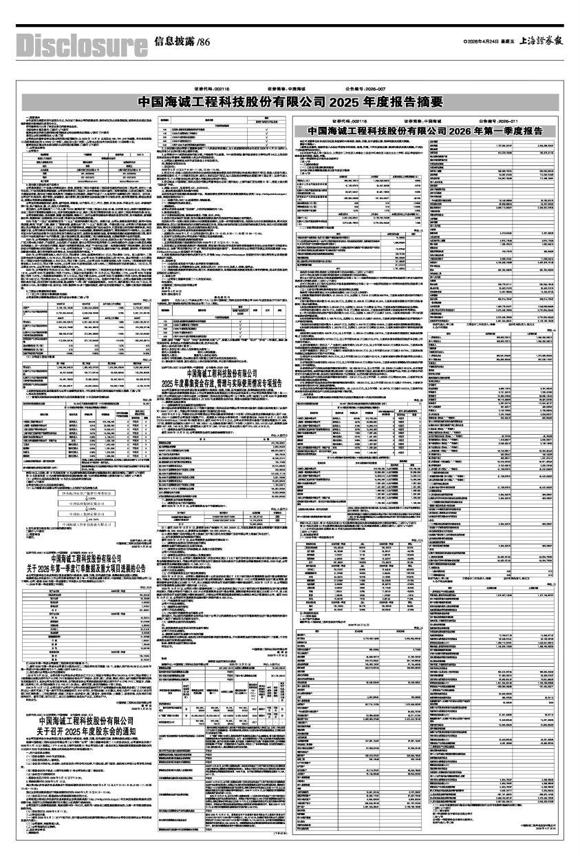 中国海诚工程科技股份有限公司2025年度报告摘要