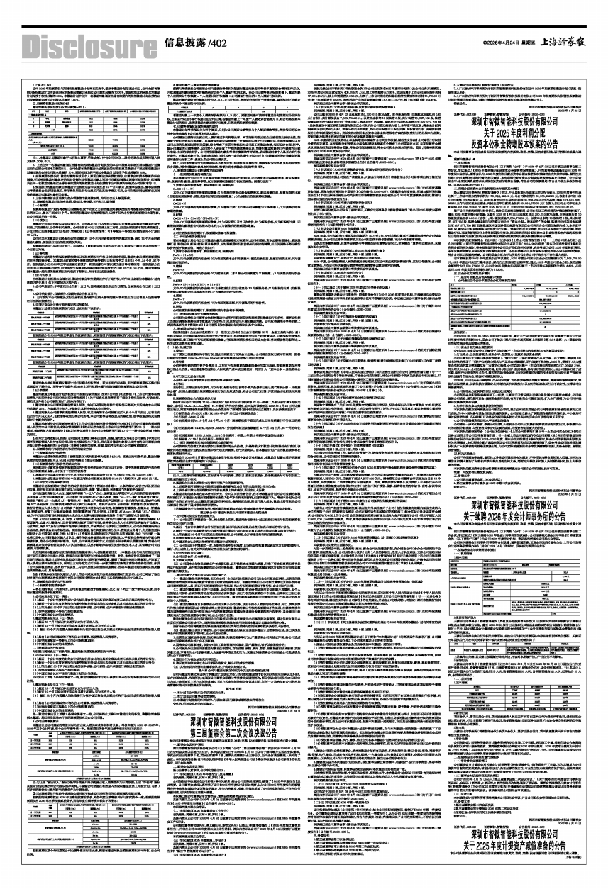 深圳市智微智能科技股份有限公司(以下简称“公司”)于2026年4月22日召开第三届董事会第二次会议,审议通过了《2025年度利润分配及资本公积金转增股本预案》,并同意将该议案提交公司2025年年度股东会审议。董事会认为:2025年度利润分配及资本公积金转增股本预案符合有关法律法规、规范性文件和《公司章程》对利润分配的相关要求,本次利润分配及资本公积金转增股本预案充分考虑了公司现金流水平、未来发展资金需求以及股东投资回报等综合因素,符合公司的发展规划,符合公司和全体股东的利益。现将相关事项公告如下: