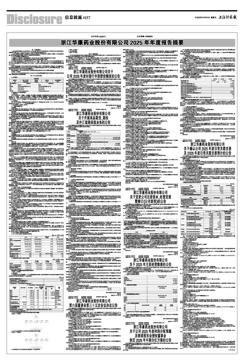 浙江华康药业股份有限公司(以下简称“公司”或“华康股份”)于2026年4月22日召开第六届董事会第三十五次会议,审议通过了《关于公司2026年度向银行申请授信额度的议案》,本议案尚须提请股东会审议。现将具体情况公告如下:
