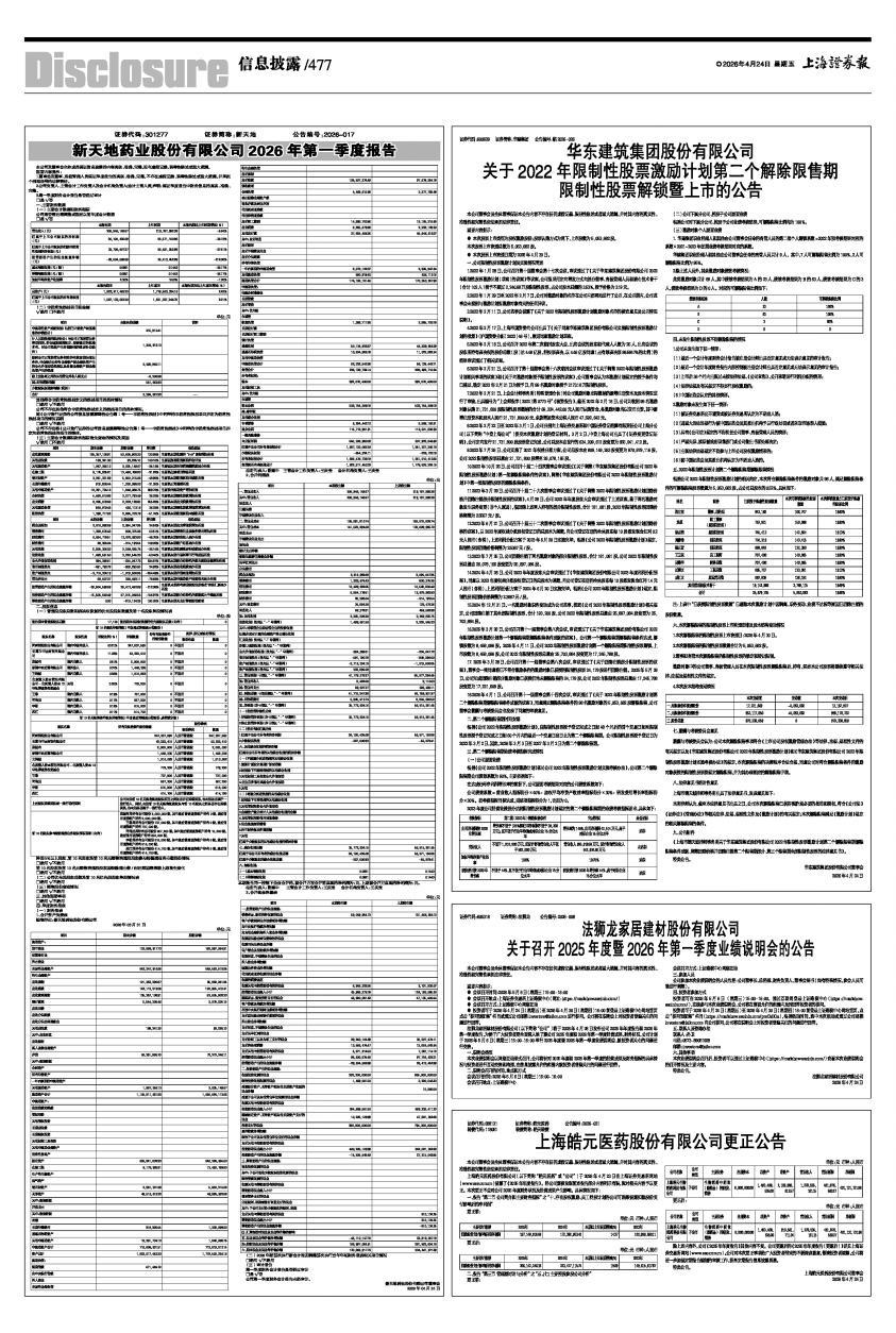 新天地药业股份有限公司2026年第一季度报告