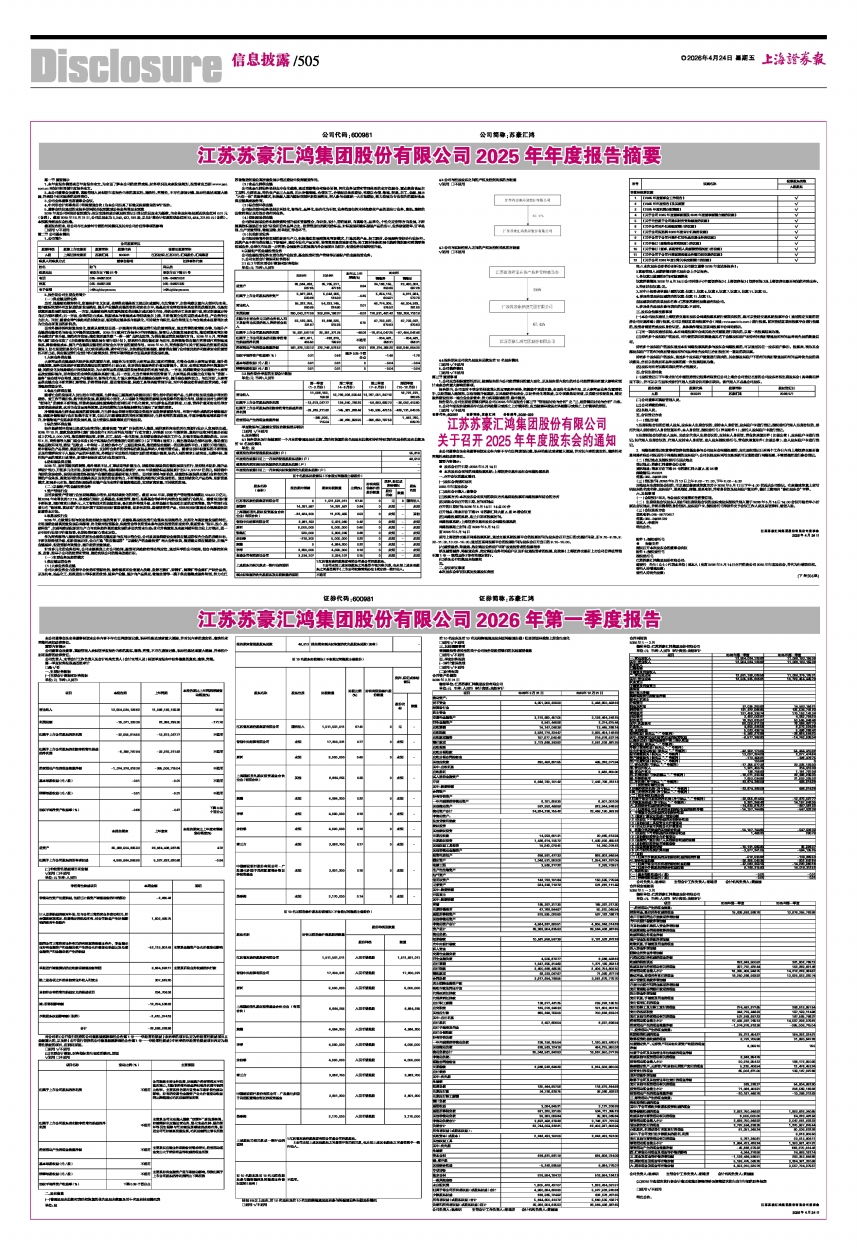 江苏苏豪汇鸿集团股份有限公司2025年年度报告摘要