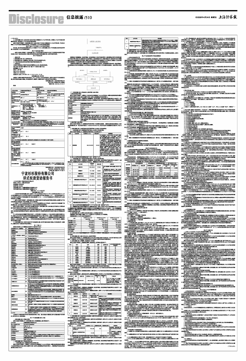 三、依据《中华人民共和国证券法》《上市公司收购管理办法》的规定,本报告书已全面披露了信息披露义务人在宁波杉杉股份有限公司中拥有权益的股份变动情况。