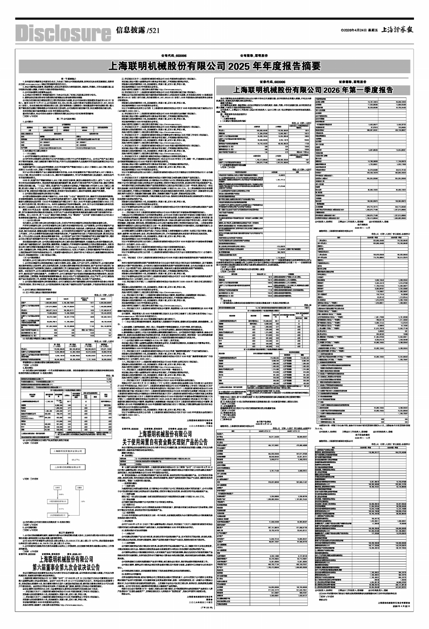 上海联明机械股份有限公司2026年第一季度报告