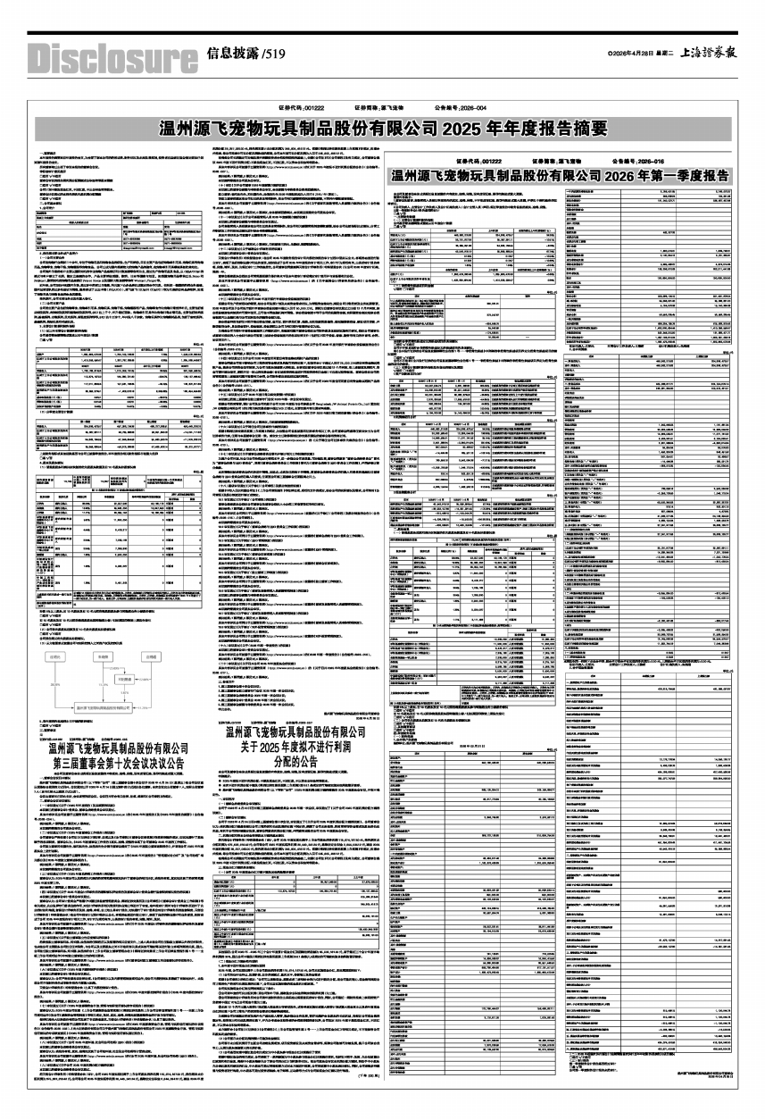 温州源飞宠物玩具制品股份有限公司2026年第一季度报告