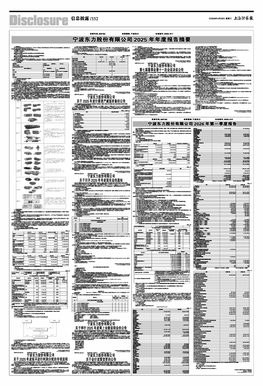 宁波东力股份有限公司(以下简称“公司”)第七届董事会第十一次会议书面通知于2026年4月17日以专人送达及微信方式发出,会议于2026年4月27日下午在公司会议室以现场加通讯方式召开。本次会议由宋济隆先生主持,应参加会议董事7人,实际参加会议董事7人,公司高级管理人员列席了会议。本次会议的召开程序符合《公司法》《证券法》及《公司章程》的有关规定。