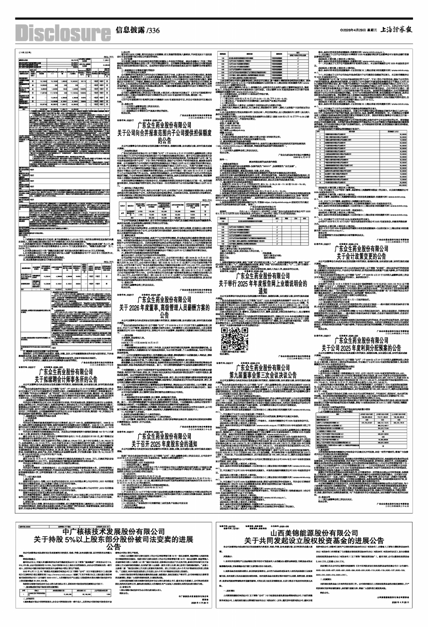 广东众生药业股份有限公司(以下简称“公司”)2025年年度报告及其摘要于2026年4月29日在公司指定信息披露媒体《证券时报》《上海证券报》和巨潮资讯网(www.cninfo.com.cn)披露。为便于投资者了解公司2025年度经营发展情况,公司将于2026年4月30日(星期四)15:00~17:00在全景网举行2025年年度报告网上业绩说明会,本次说明会将采用网络远程的方式举行,投资者可登陆全景网“投资者关系互动平台”(https://rs.p5w.net)参与本次说明会。
