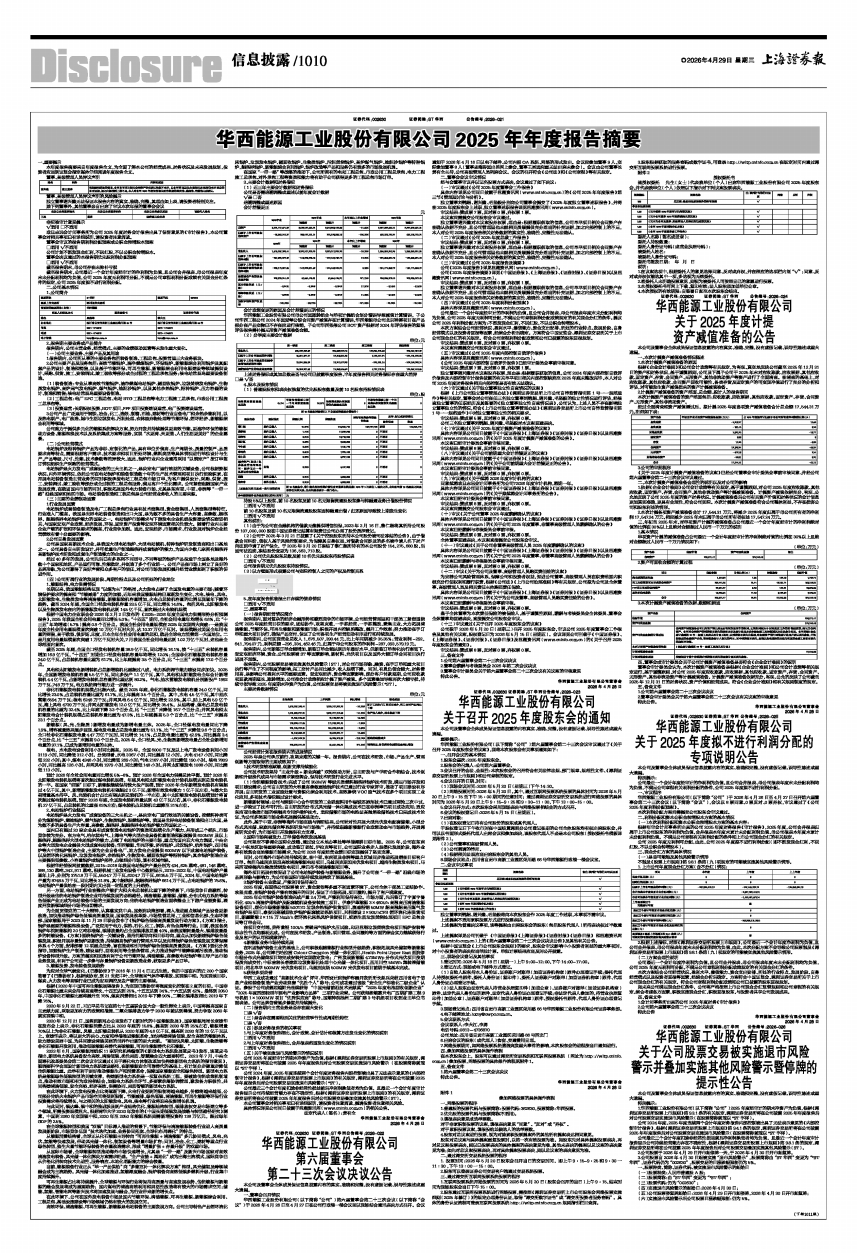 1.华西能源工业股份有限公司(以下简称“公司”)2025年度经审计的期末净资产为负值,根据《深圳证券交易所股票上市规则》第9.3.1条的有关规定,深圳证券交易所将在公司披露2025年年度报告后对公司股票交易实施退市风险警示(在股票简称前冠以*ST 字样)。