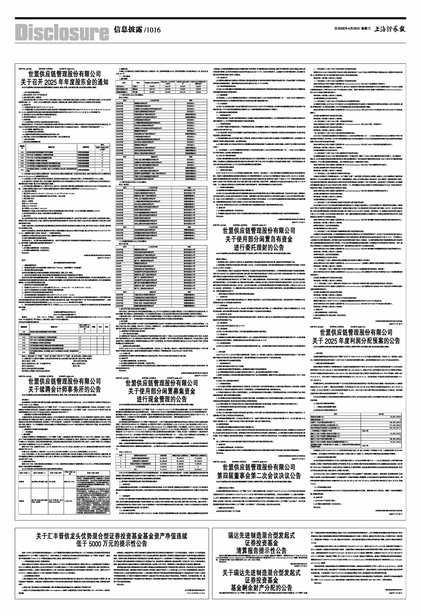 世盟供应链管理股份有限公司(以下简称“公司”)于2026年4月27日召开第四届董事会第二次会议,以7票同意、0票反对、0票弃权的表决结果审议通过了《关于2025年度利润分配预案的议案》,本议案尚需提交公司2025年年度股东会审议。