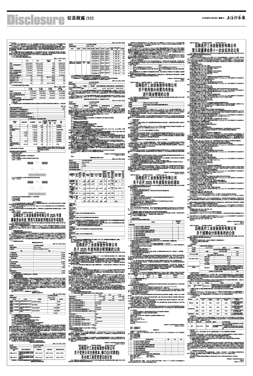 具体内容详见公司于同日披露在上海证券交易所网站(www.sse.com.cn)的《迈得医疗工业设备股份有限公司2025年年度报告》及《迈得医疗工业设备股份有限公司2025年年度报告摘要》。