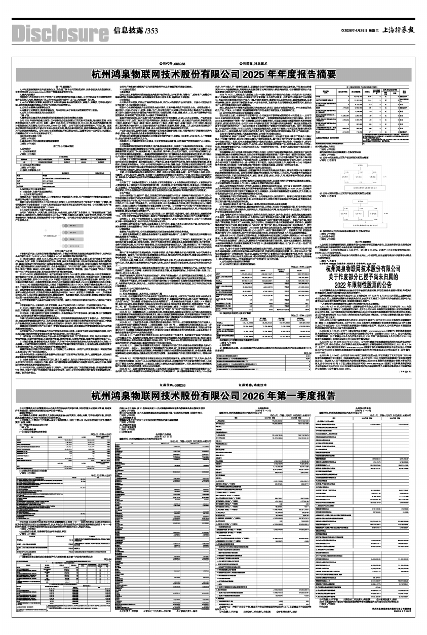 杭州鸿泉物联网技术股份有限公司2026年第一季度报告