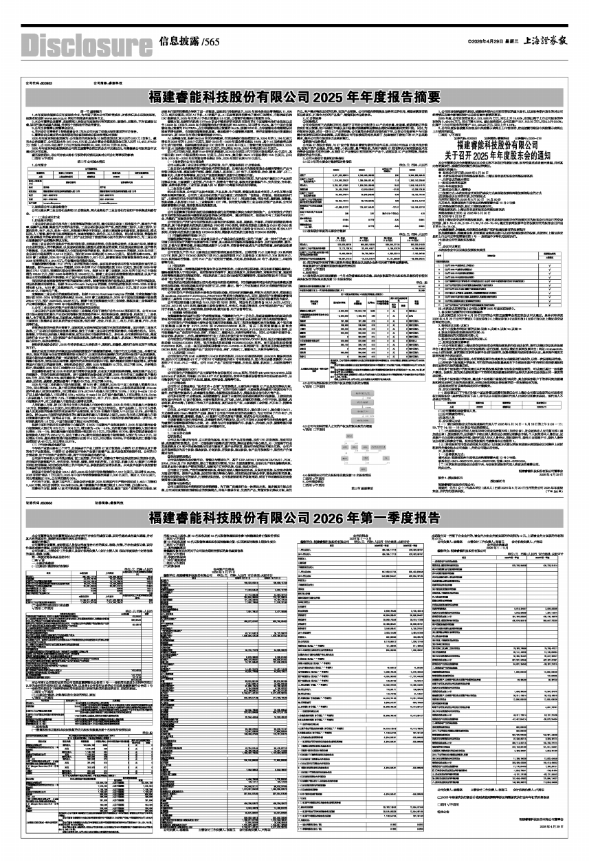 福建睿能科技股份有限公司2026年第一季度报告
