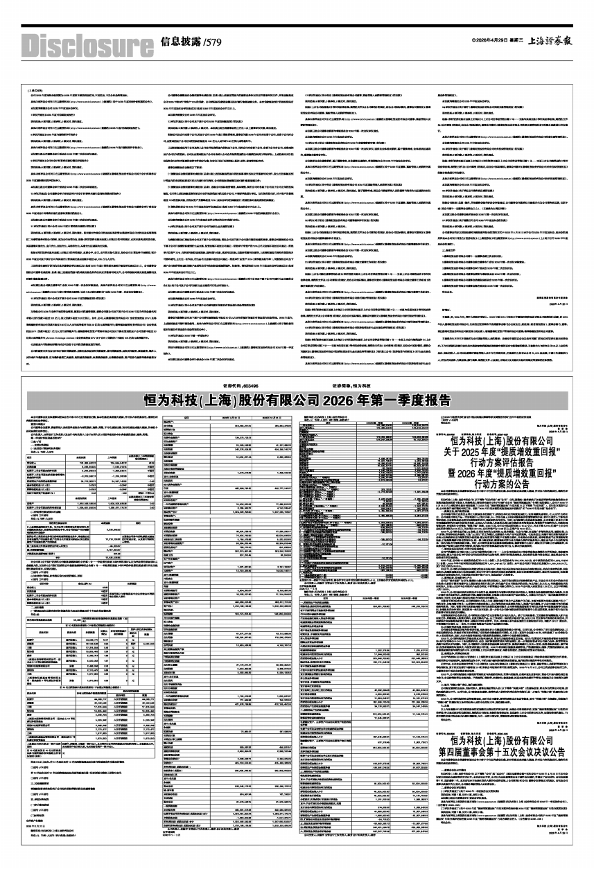 具体内容详见上海证券交易所网站(www.sse.com.cn)披露的《恒为科技(上海)股份有限公司2026年一季度报告全文》。(公告编号:2026-025)