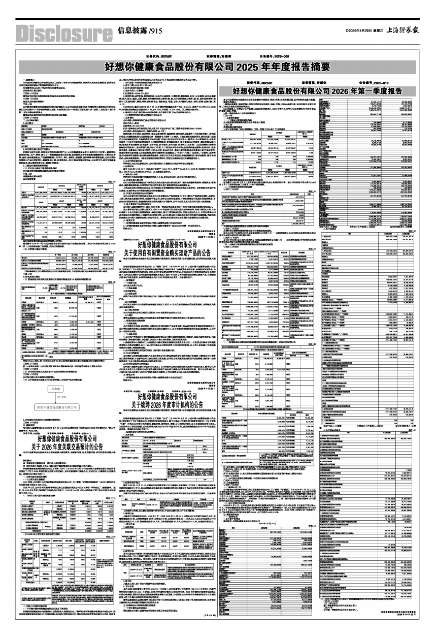 7、财务状况:截至2025年12月31日,好想你控股集团总资产103,410万元,净资产16,575万元;2025年,好想你控股集团实现营业收入23,428万元,净利润-3,526万元。以上数据未经审计。