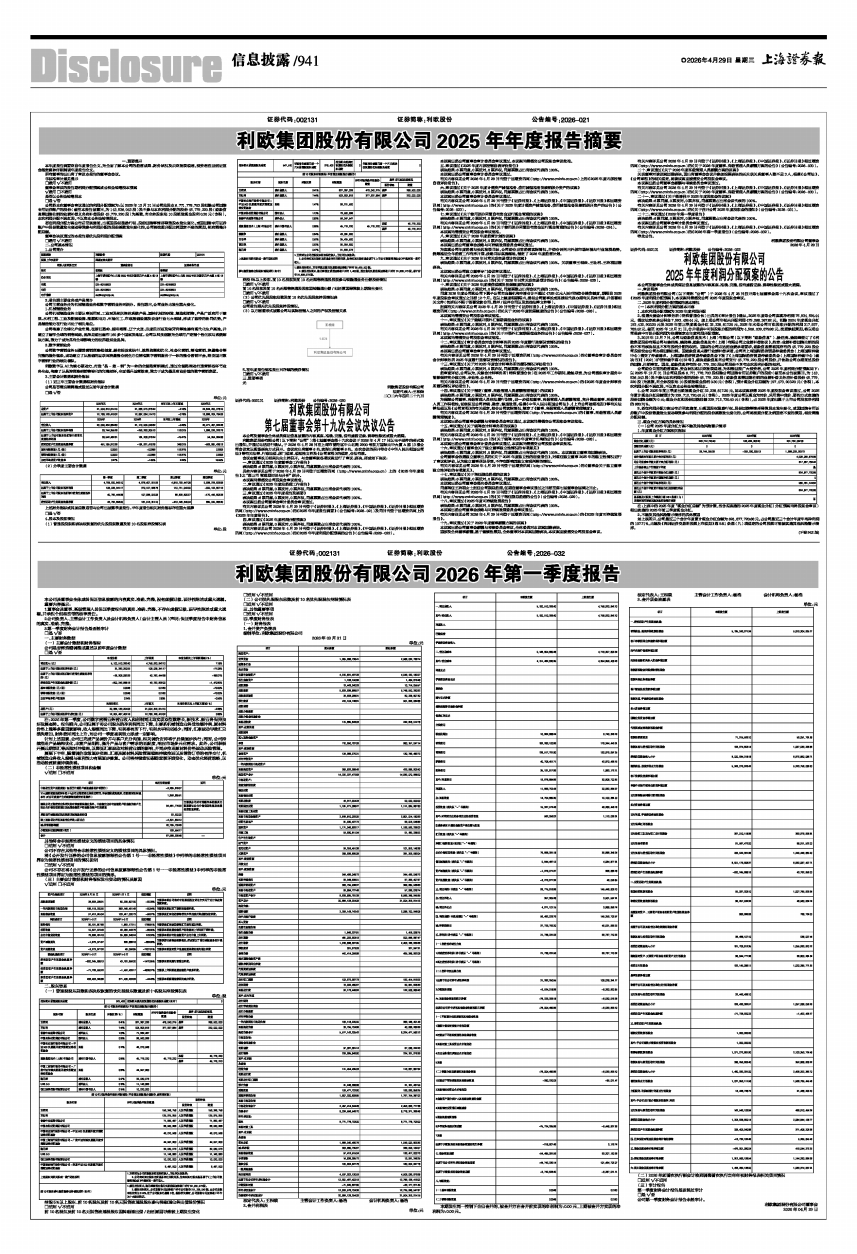 利欧集团股份有限公司(以下简称“公司”)于2026年4月28日召开第七届董事会第十九次会议,审议通过了《2025年度利润分配预案》,本议案尚需提交公司2025年度股东会审议。