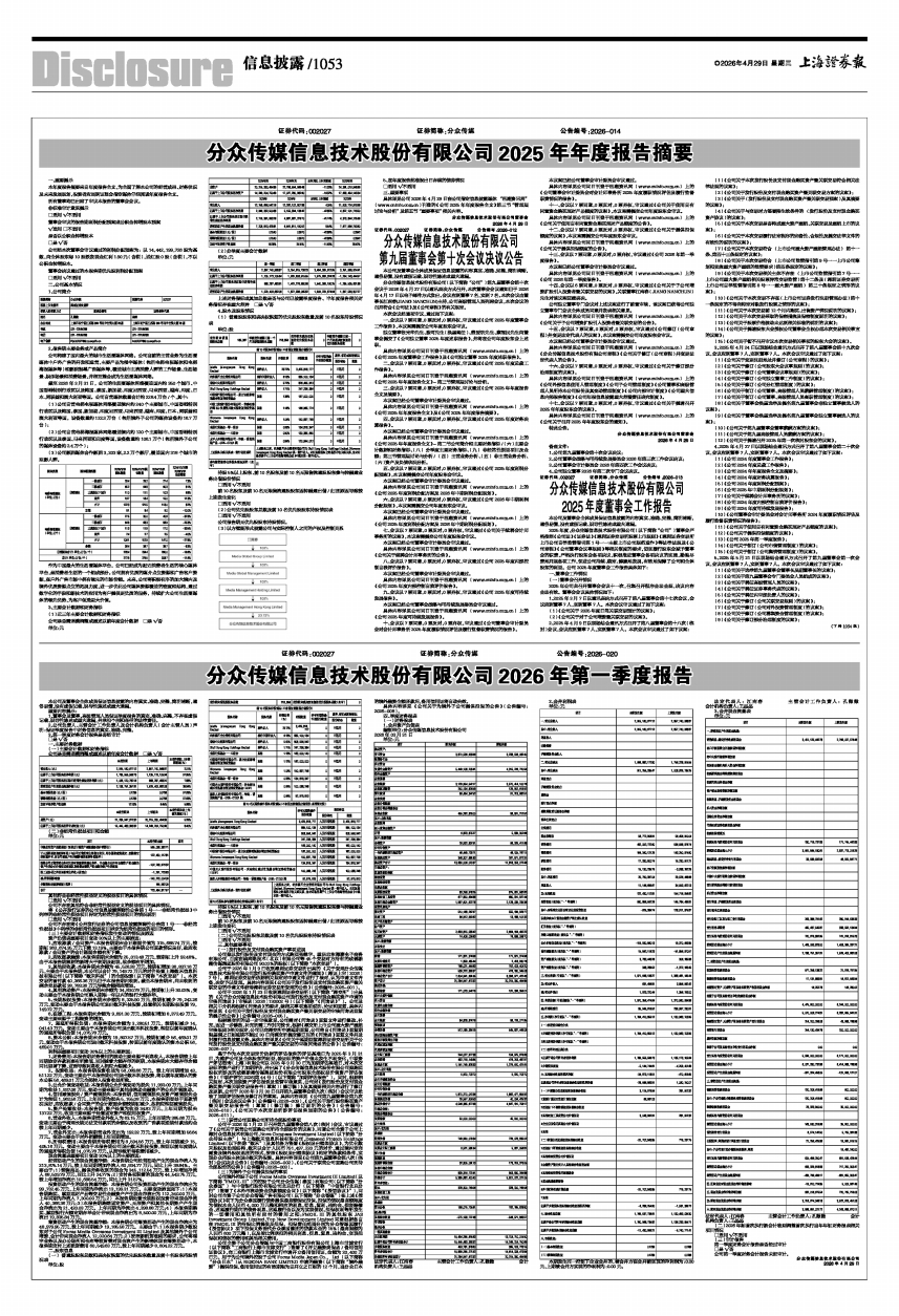 分众传媒信息技术股份有限公司(以下简称“公司”)第九届董事会第十次会议于2026年4月27日以通讯表决方式召开,本次董事会会议通知已于2026年4月17日以电子邮件方式发出。会议应到董事7名,实到7名。本次会议由董事长江南春(JIANG NANCHUN)主持,公司高级管理人员列席会议,本次会议的召开符合《公司法》及《公司章程》的有关规定。
