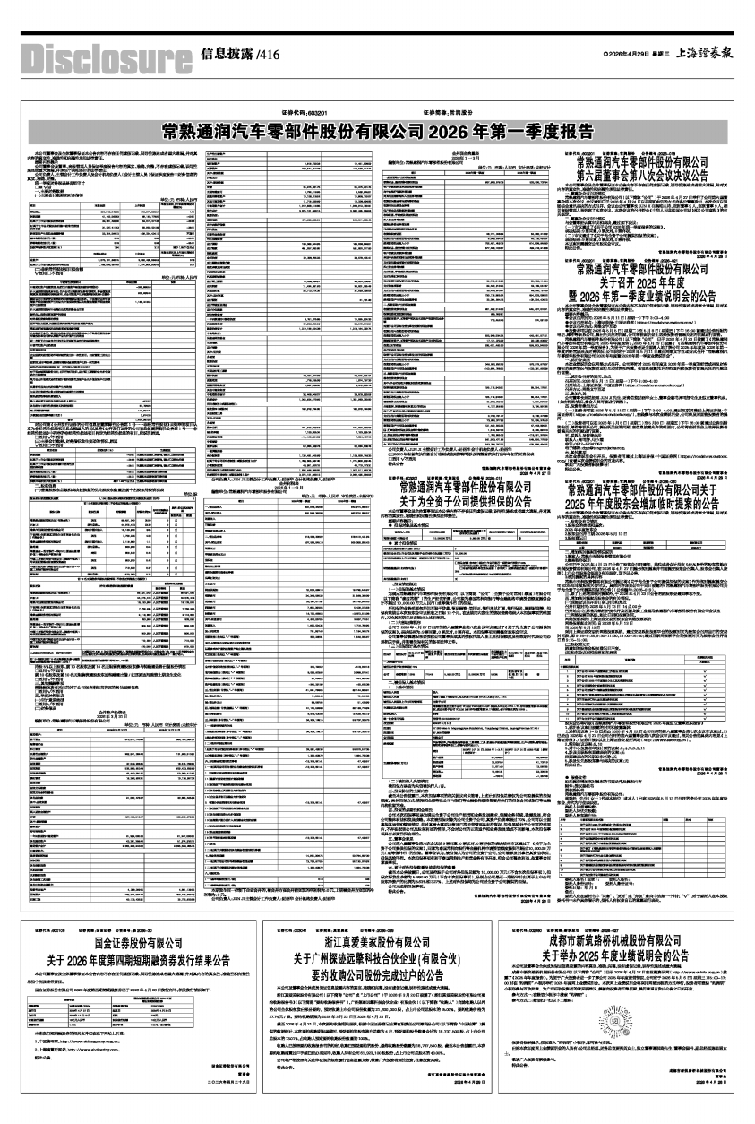 常熟通润汽车零部件股份有限公司2026年第一季度报告