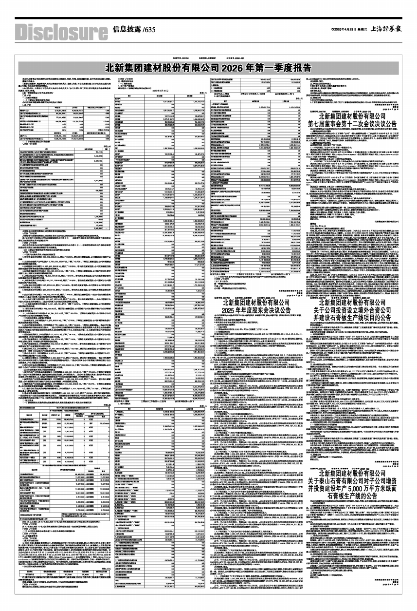 北新集团建材股份有限公司2026年第一季度报告