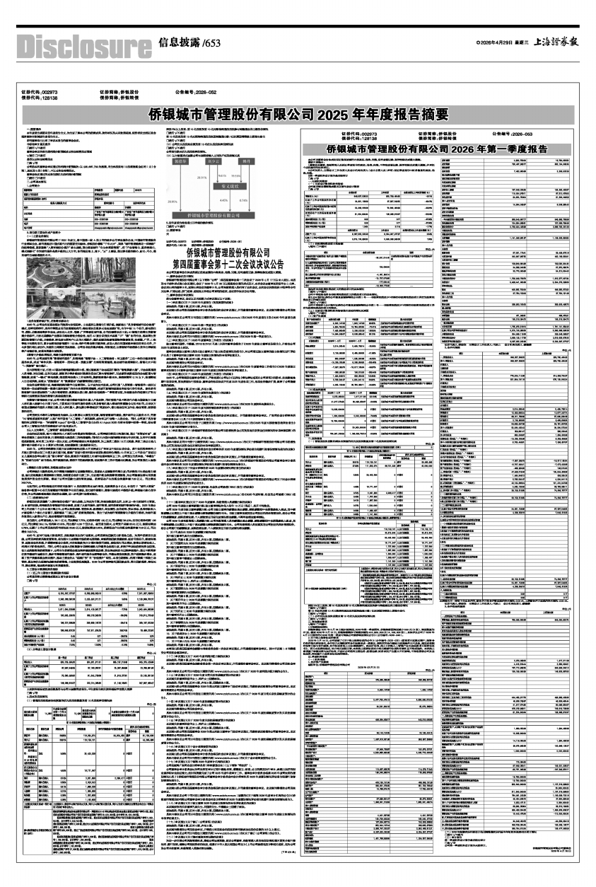 侨银城市管理股份有限公司(以下简称“公司”)第四届董事会第十二次会议于2026年4月17日以专人送达、电话及电子邮件形式发出会议通知,会议于2026年4月28日以现场结合通讯形式召开,本次会议由董事长郭倍华女士主持,会议应出席的董事9名,实际出席会议的董事9名,公司高级管理人员列席了本次会议,本次会议召集和召开程序符合有关法律、行政法规、部门规章、规范性文件和公司章程的规定,会议所作决议合法有效。