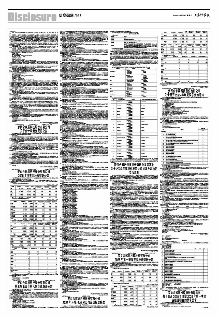 根据《上海证券交易所上市公司自律监管指引第3号一一行业信息披露》及其附件《第十五号一一家具制造》的要求,梦百合家居科技股份有限公司(以下简称“公司”)统计了2026年第一季度主要经营数据,具体情况如下:
