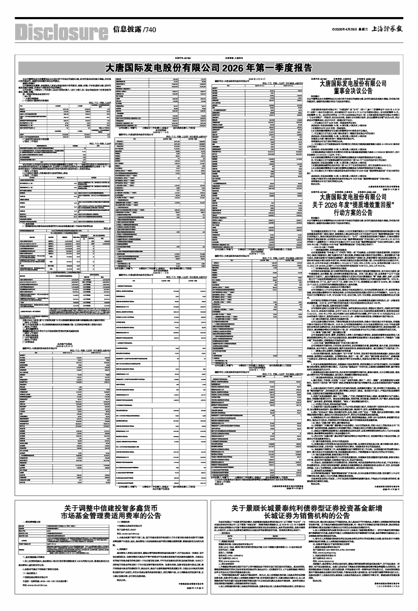 为全面落实国务院《关于进一步提高上市公司质量的意见》《关于加强监管防范风险推动资本市场高质量发展的若干意见》要求,积极响应上海证券交易所《关于开展沪市公司“提质增效重回报”专项行动的倡议》,推动大唐国际发电股份有限公司(“公司”)高质量发展和投资价值提升,打造长期稳定的股东价值回报机制,公司制定《2026年度“提质增效重回报”行动方案》,并于2026年4月28日召开的第十二届董事会十二次会议审议通过《关于2026年度“提质增效重回报”行动方案的议案》。现将2025年主要工作成效及2026年度“提质增效重回报”行动方案公告如下: