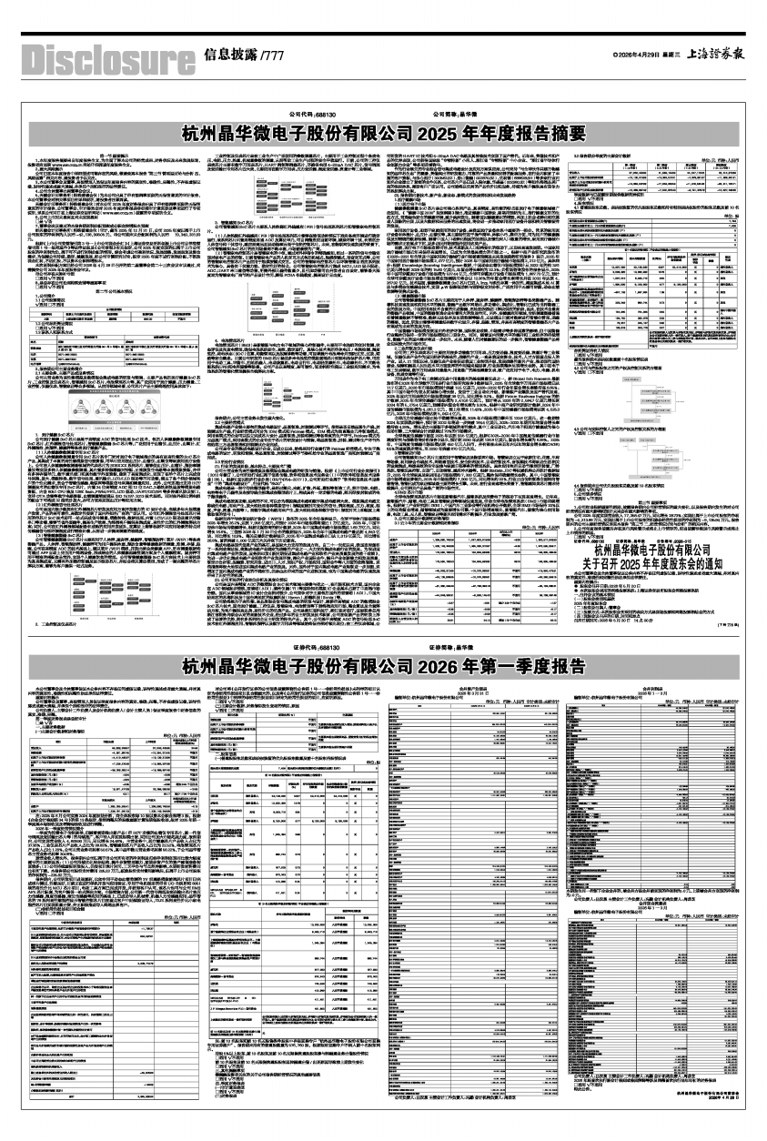 杭州晶华微电子股份有限公司2026年第一季度报告