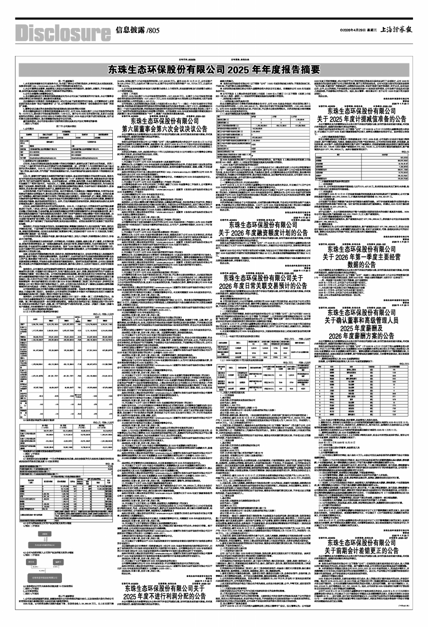 具体内容详见上海证券交易所网站(www.sse.com.cn)披露的《东珠生态环保股份有限公司2025年度财务决算报告》《东珠生态环保股份有限公司2025年度审计报告》。